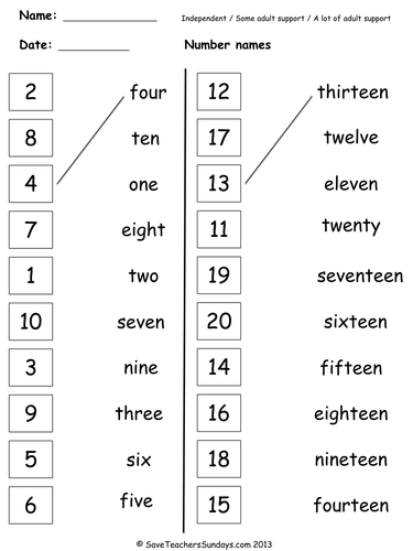 Number Words 1 20 Worksheets A B